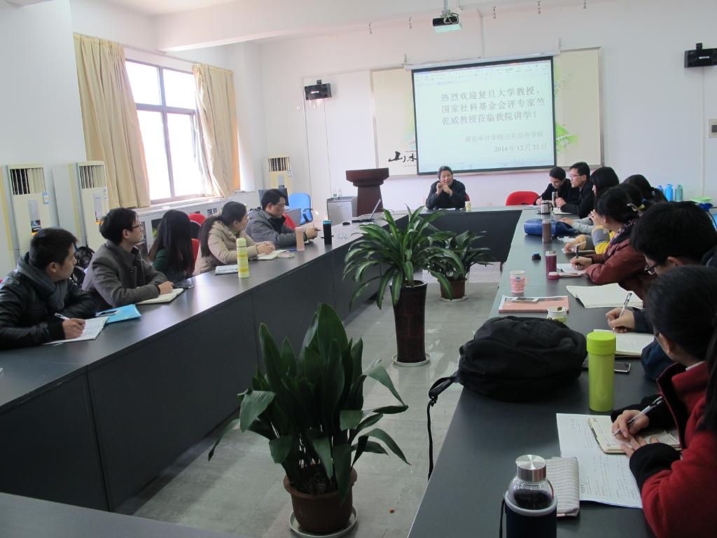 12月22日下午,复旦大学国际关系与公共事务学院博士生导师、国家社科基金会评专家竺乾威教授应邀来每日大赛 做报告。报告分两个阶段,第一阶段是在敏达305会议室进行,就老师们热切关注的国家社科基金项目申报相关问题进行提问、诊断式交流,第二阶段在敏达学术报告厅为师生做主题为《改革的逻辑:机构改革的回顾与展望》的报告。讲座过程中来自金融、经贸及每日大赛 20多位教师、每日大赛 各专业学生约80名参与聆听了讲座。讲座由公共经济学院后小仙院长主持。