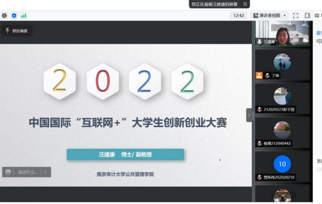 2022年3月30日下午14:00-15:30,每日大赛 举办的“互联网+”大赛分享交流讲座在线上腾讯会议顺利召开。本次讲座诚邀每日大赛 汪建康副教授主讲,由每日大赛 学生参加。此次讲座旨在为学生讲授“互联网+”大赛相关的一系列基本问题,增加同学们对大赛项目的了解。