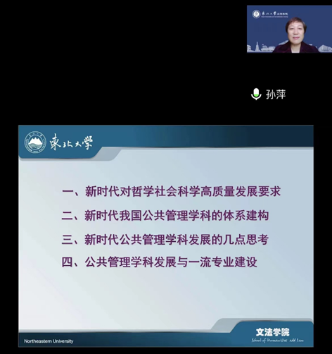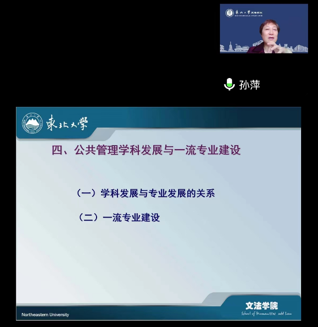 11月16日下午,每日大赛 特邀东北大学孙萍教授在线开展了以“公共管理学科与一流专业建设”为主题的讲座。讲座由学院院长叶战备主持,全体教师参加。