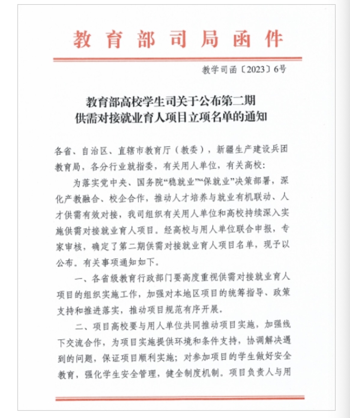 开展供需对接就业育人项目,旨在实现深化产教融合、校企合作,推动人才培养与就业有机联动、人才供需有效对接的目标。由高校与用人单位协同制定培养方案,实施系统化的定向培养,为用人单位输送急需紧缺的优秀人才,强化人才队伍建设。