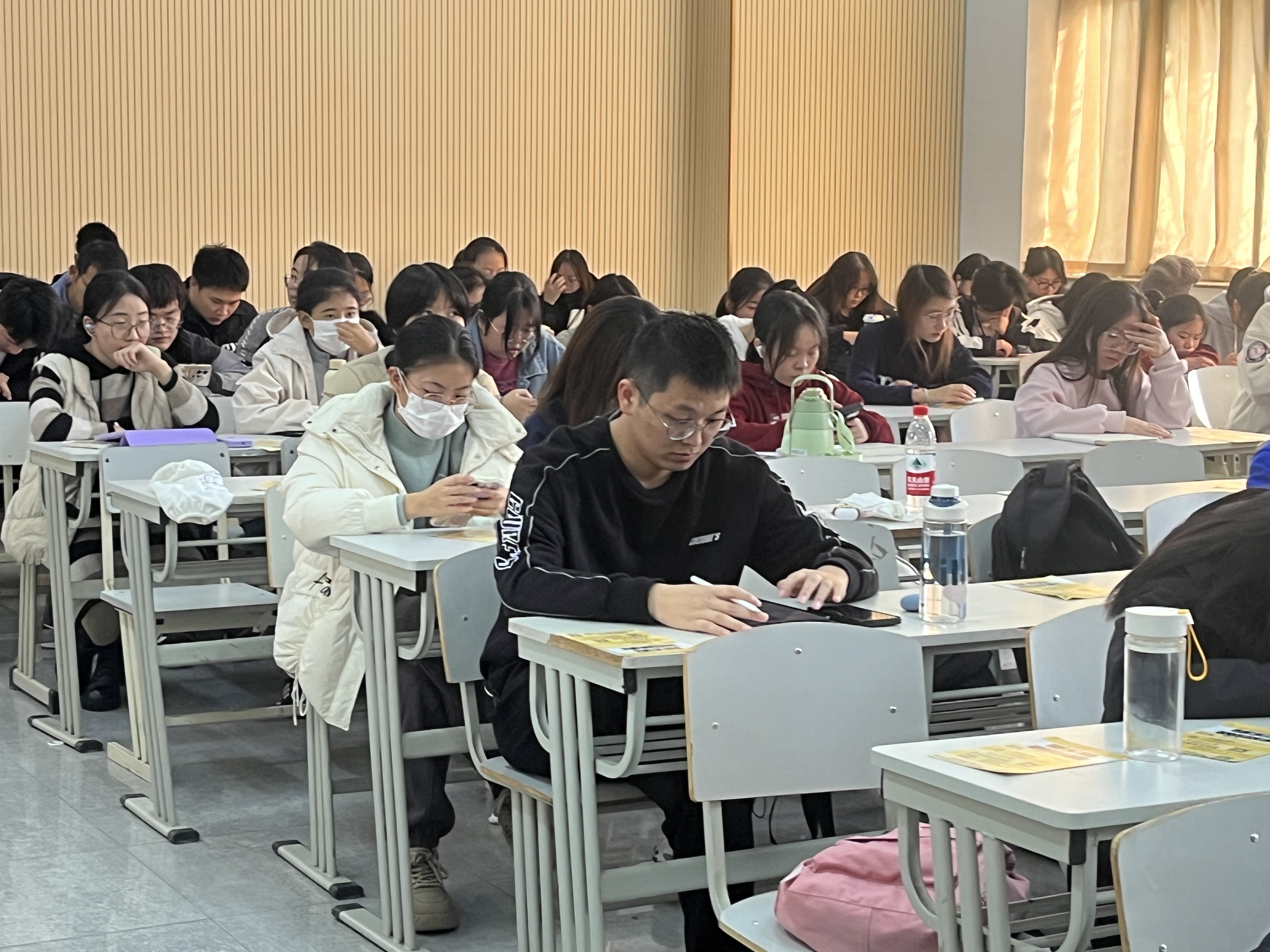 此外,为了让同学们对公务员考试的题型有更直观的认识,仲老师现场讲解了部分公务员考试中行政职业能力测试的题目。通过师生互动,在活跃气氛的同时,让大家获得更多知识,也让大家改变了对部分题目的刻板印象和自身在思考时的固定逻辑。